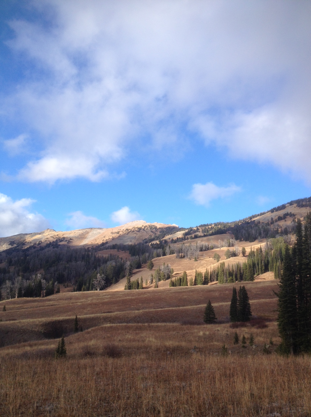 Forgive the nomenclature, I don’t know if this area was a true meadow. I do know it was one of the most serene areas I have ever visited. The land is sunken between colliding higher grounds and four or five streams flowing from the high ground converge in the low land. Earth tones rejoice! The yellows of the surrounding grassland give way to various shades of gray, purple, and brown with small trees providing dots of green. With the slight elevation changes of the land and various colors and textures of the flora I’m in Bob Ross heaven. The flowing water of the small streams provided an amazing soundtrack.